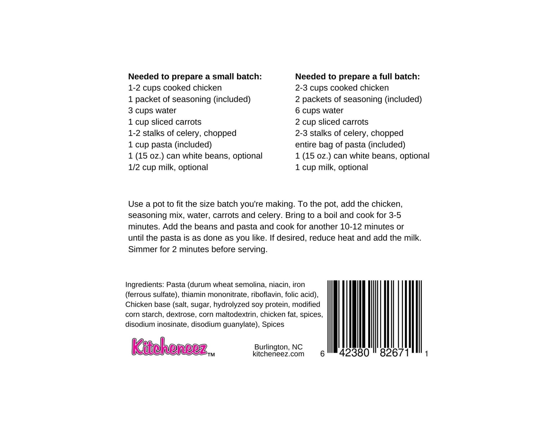 Chicken Noodle Soup One Pot Dish Kit with Seasoning and Pasta