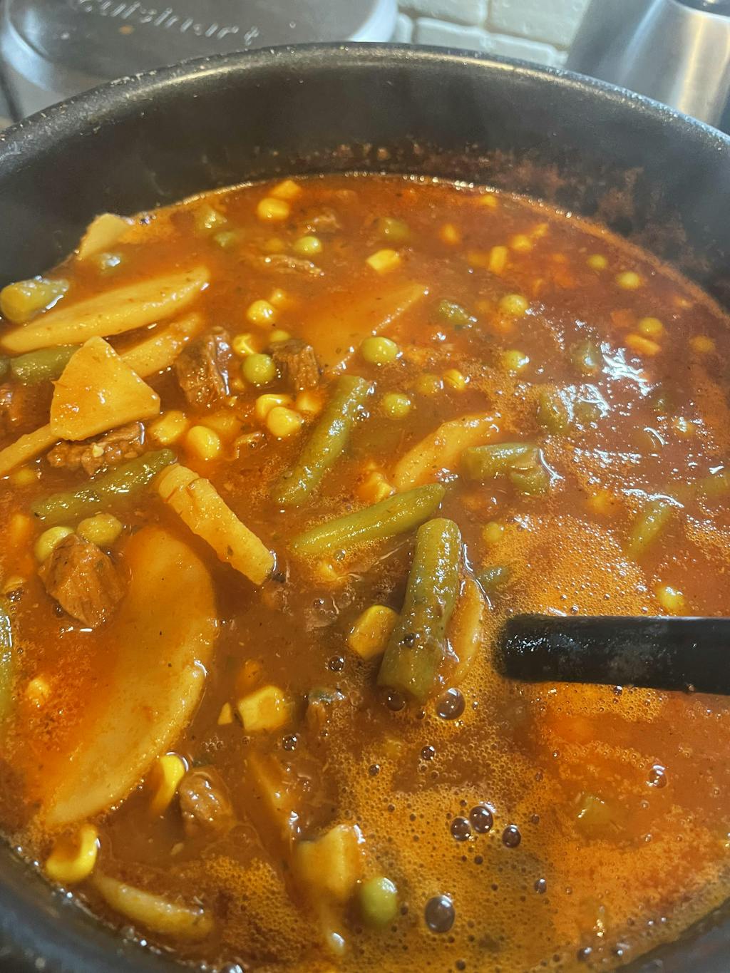 1 (15 oz) can of each: whole corn, green beans, sliced carrots, sliced potatoes diced tomatoes and tomato sauce
